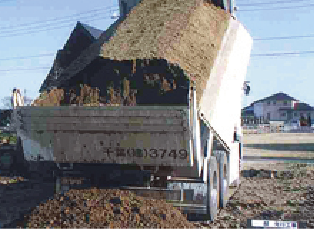 畑土をダンプで運び込む -