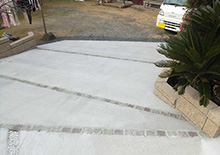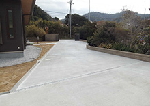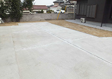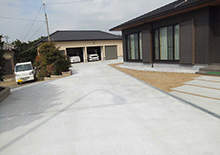 広いお庭にコンクリート土間を実現しました。硬い地盤と砕石地業がポイントの工事でした。