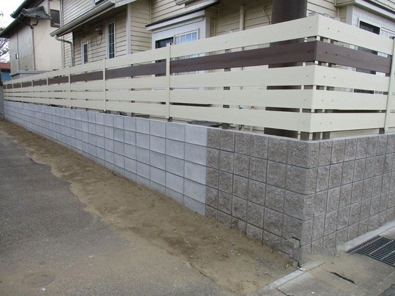 2色使いでお洒落な樹脂フェンスは、建物と同系色でまとめました。