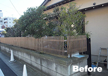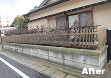 ヒイラギ樹を抜き、ベニバナトキワマンサク樹の生垣に変えました。