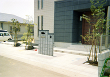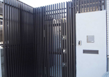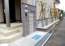 縦格子柵の中に門扉が隠れています。これからの都市型外構ですね。