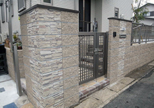 出隅に自然石調デザインがポイント!