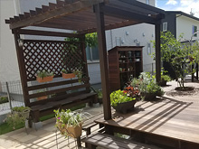 足元にナチュラルな雰囲気の平板を敷き込みました。