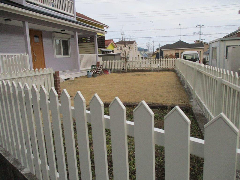 真っ白なアメリカンフェンスで可愛いお庭が完成しました。