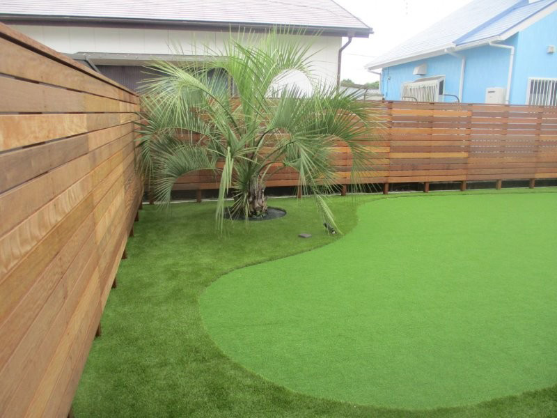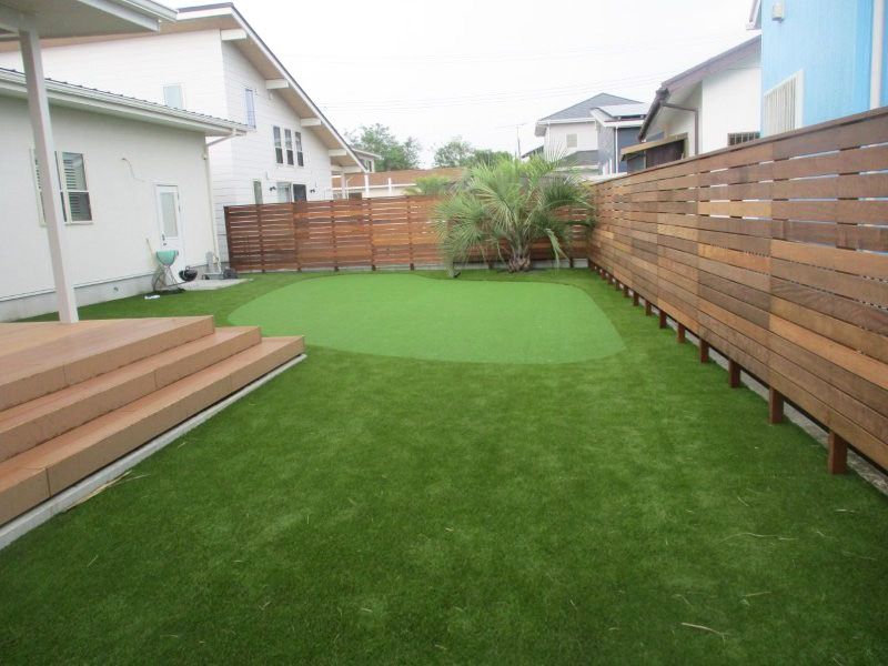 中庭部分には、ゴルフ練習用のグリーンを造作しました。