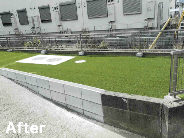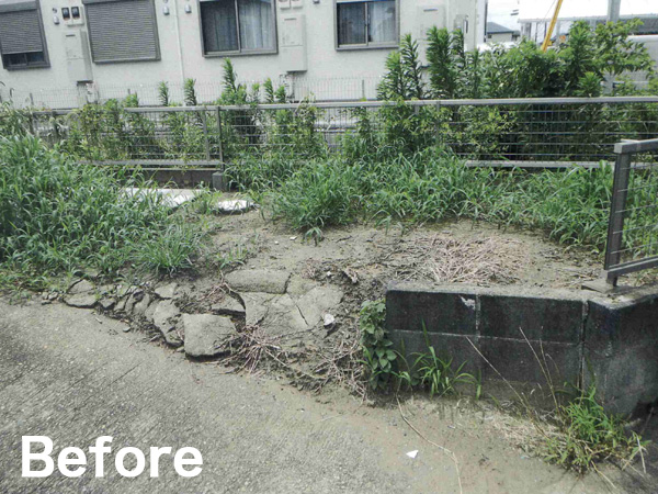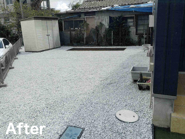 雑草対策や機能面向上を目的に、地面を整形しグランドカバーを計画しました。