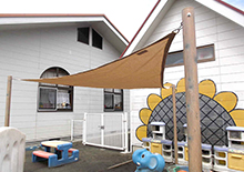 シェード付きの砂場です。差し込んでくる日差しをカットします!