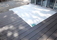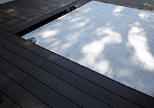「人工樹脂派、タイル貼りテラス派」の両方を兼ね備え、シックモダンで広々としたテラスが堂々と完成致しました♪