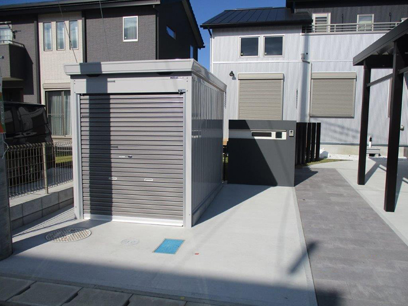 その他、コンクリート駐車場にはバイク庫をプラス。