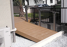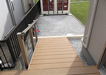 デッキ材にて、スロープ形状のアプローチを作りました♪