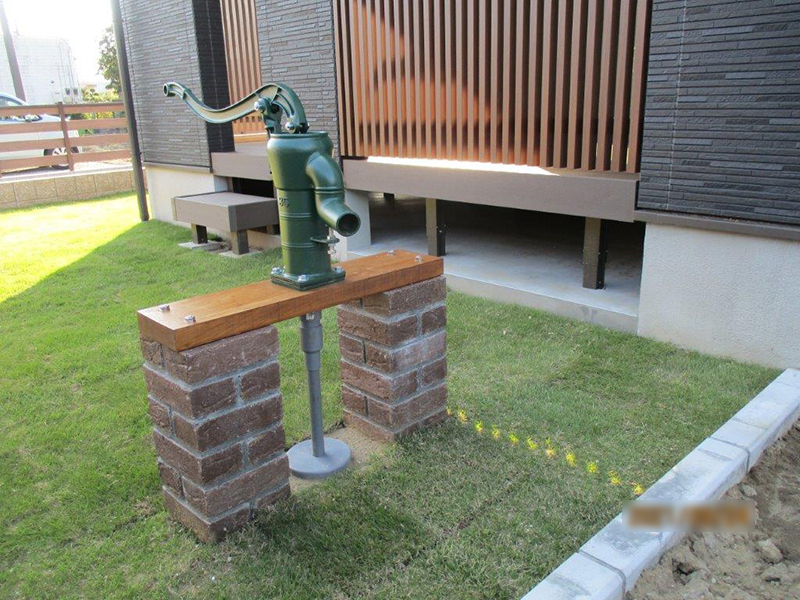 お庭用の手動式ポンプがレトロな印象です♪