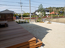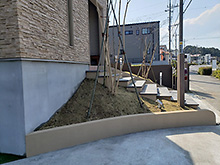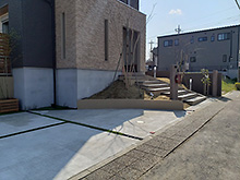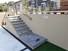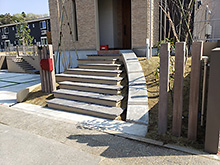 アプローチの高低差を活かし、大判サイズのダルストーン(東洋工業)をステップとして使用しました。
