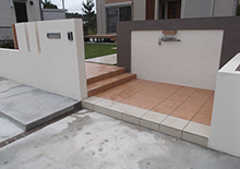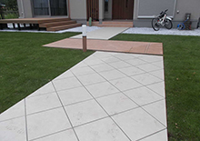 モダンな面の展開から中庭に踏み出すと、アプローチタイルが素敵に迎えてくれます!