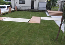 サマーグリーンの芝生も心地よく、千客万来のお庭の完成です(^^)v