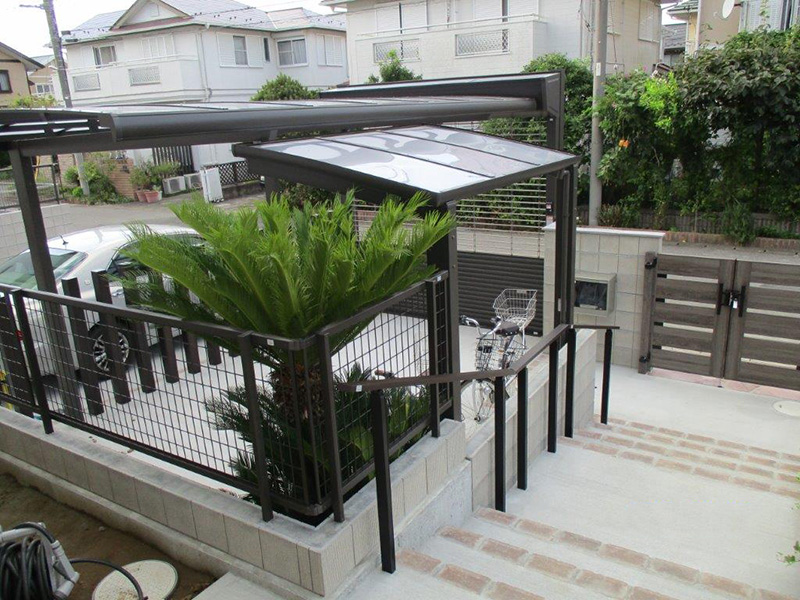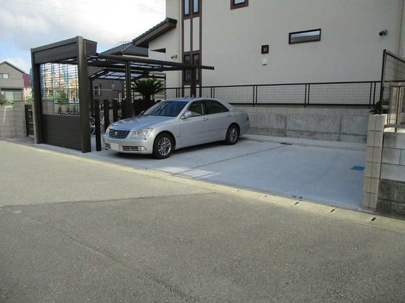 駐車場には、大切なお車を守るガレージシャッターを設け、アプローチの花壇は、ガーデニングスペースとして、寄せ植えした可愛い草花がお出迎えしてくれます。