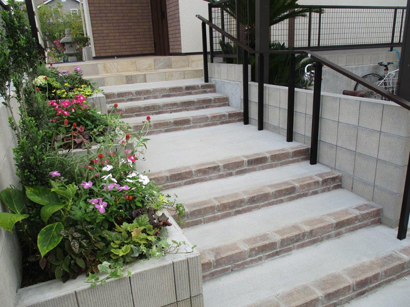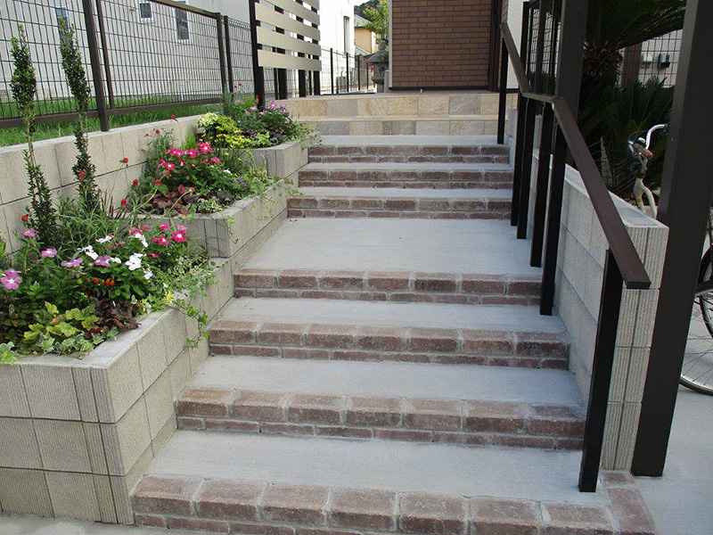 また、足元を彩るナチュラルカラーの自然石やレンガが温かみある印象です。