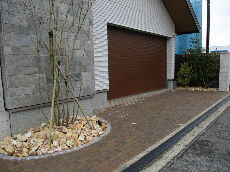 透水性・耐久性も高く、門まわり~車庫内に使用しています。