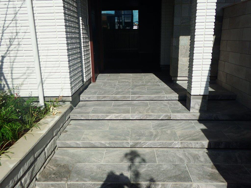 足もとの舗装材にもこだわり、石目調で上品な物をチョイスしました。
