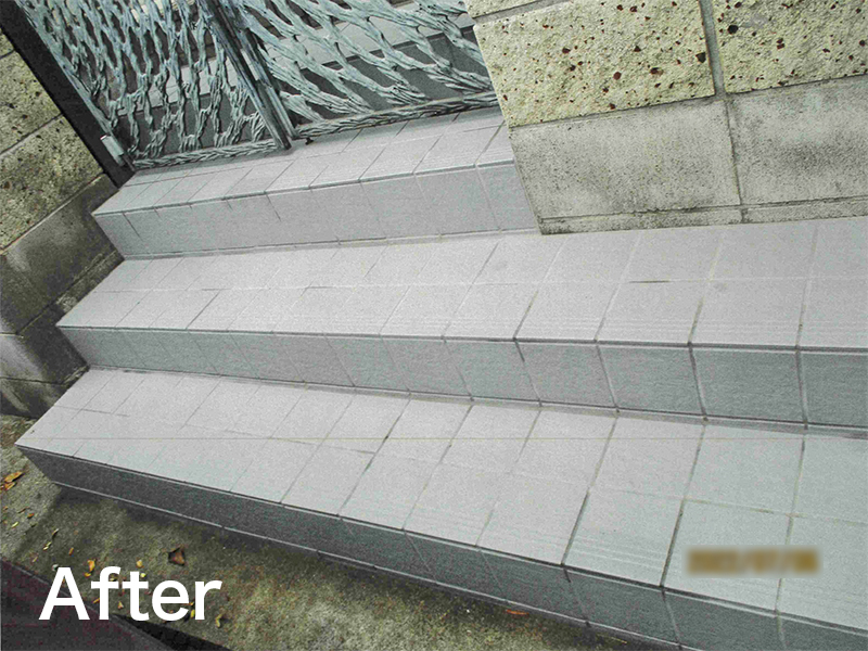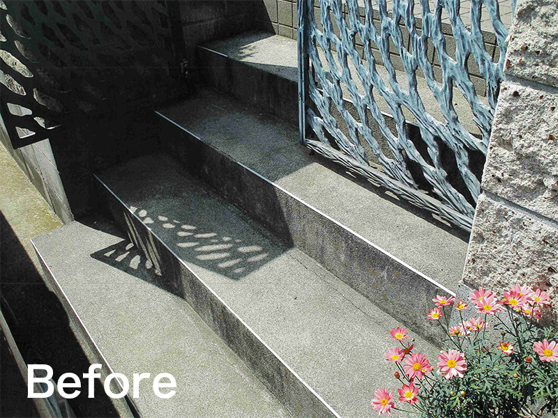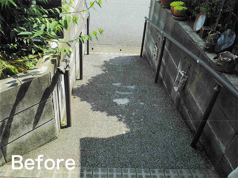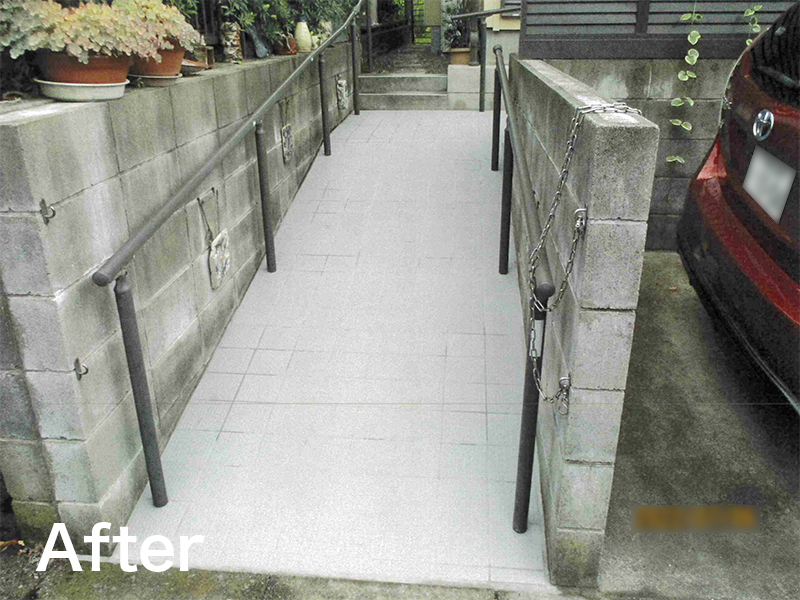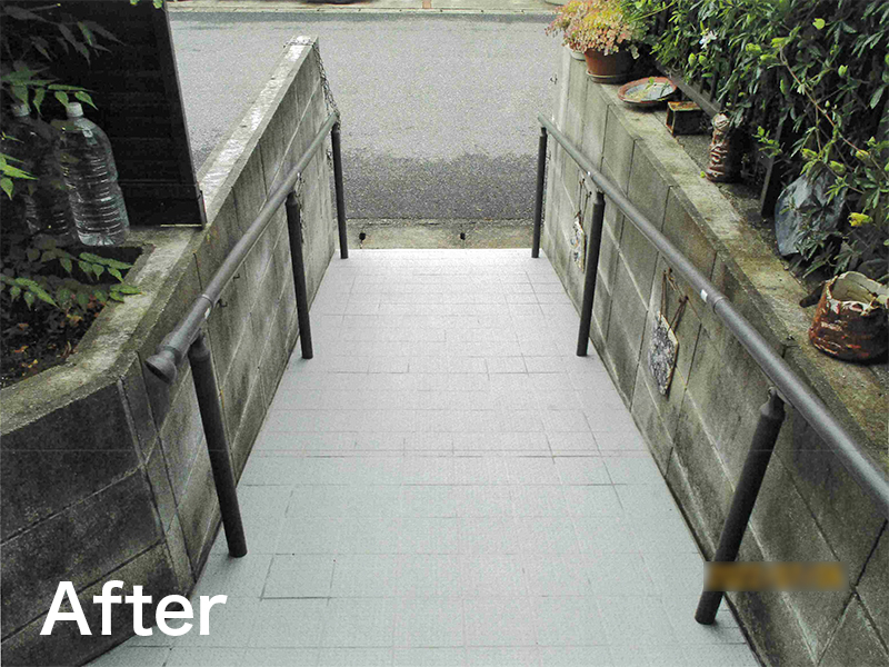 以前、施工させていただいた床材を剥がし、ノンスリップタイルに貼り替えました。