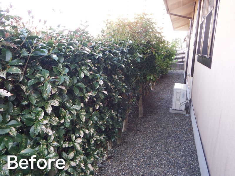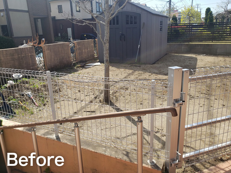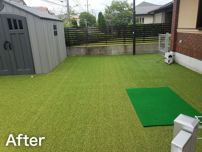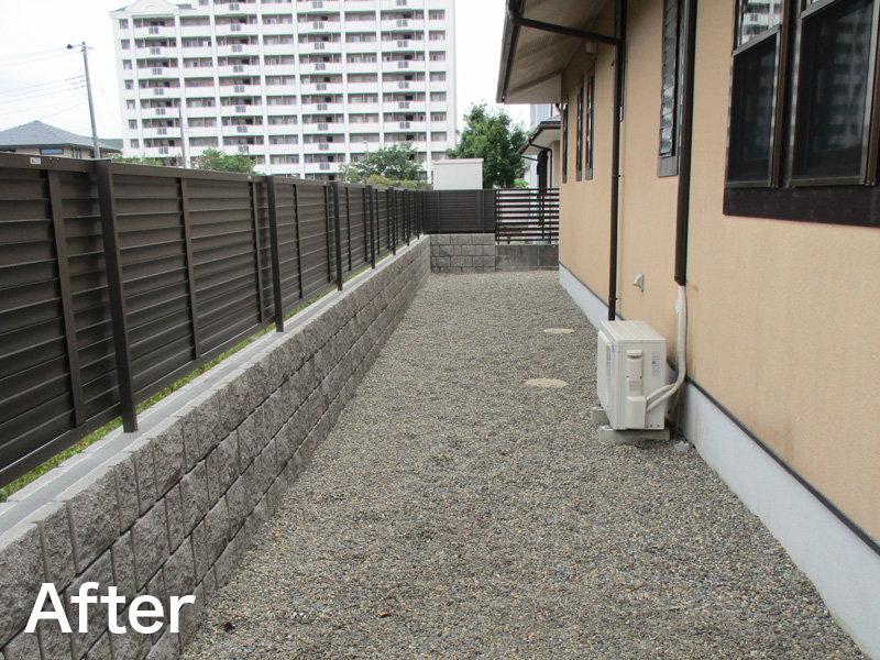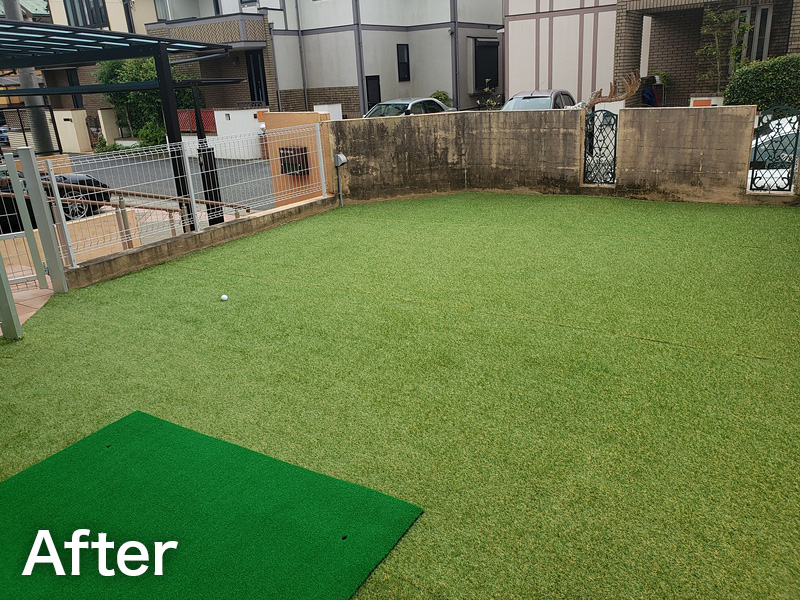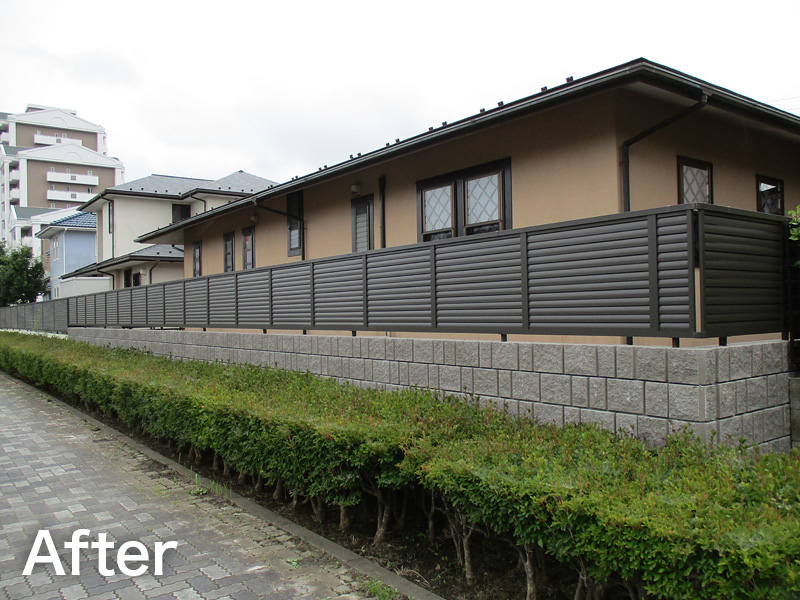 生垣を撤去し、ブロック塀+フェンスで見た目もスッキリと、中庭部分は、人工芝で仕上げました。