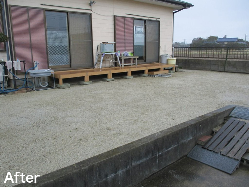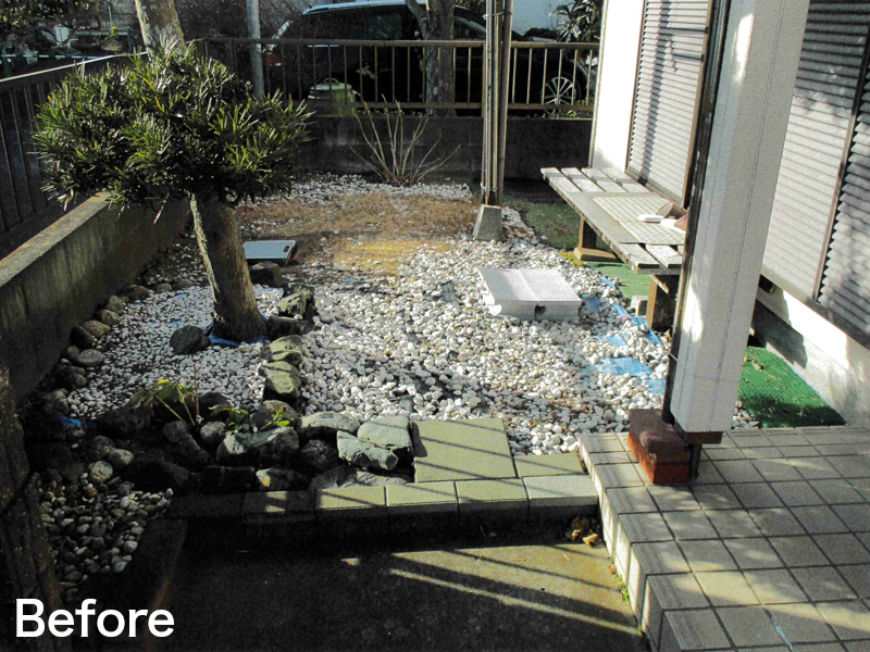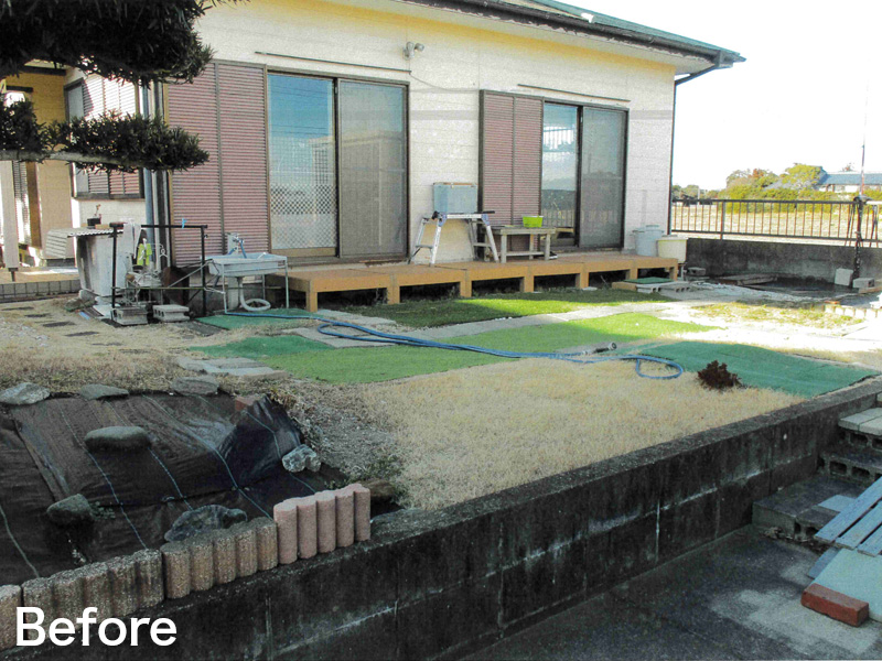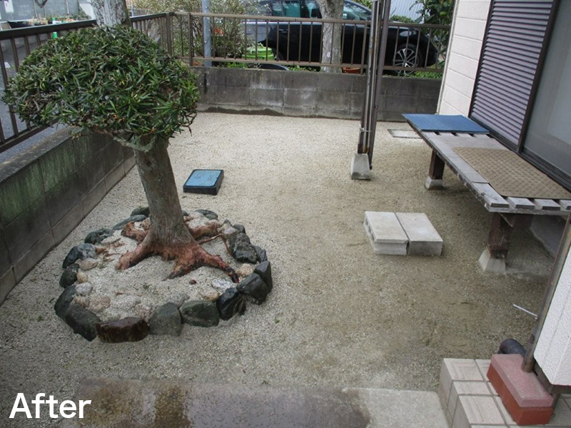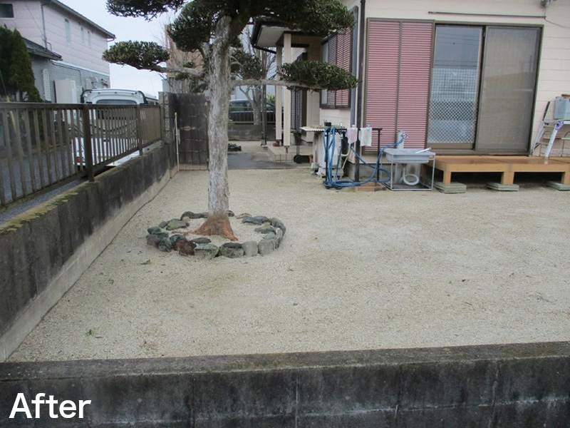 自然で扱い易い岩瀬砂を敷き込み、フラットなお庭を目指しました。