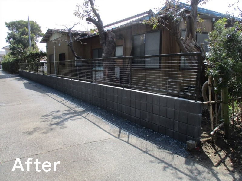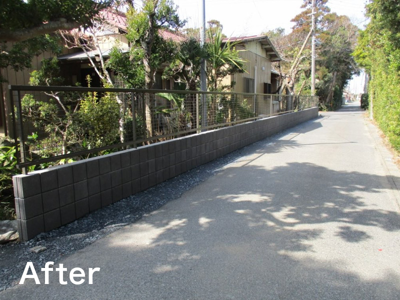 既存生垣撤去、新設ブロック積み+フェンスへやり替えました!