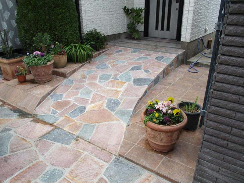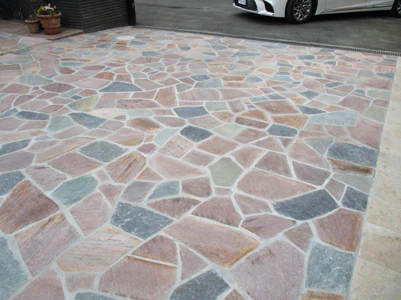 ランダムに配色された3色の自然石が華やかな印象です。