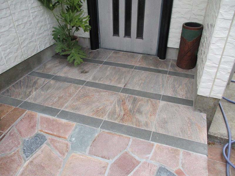 門や玄関まわりに使用したタイルも自然石に負けない存在感があります。