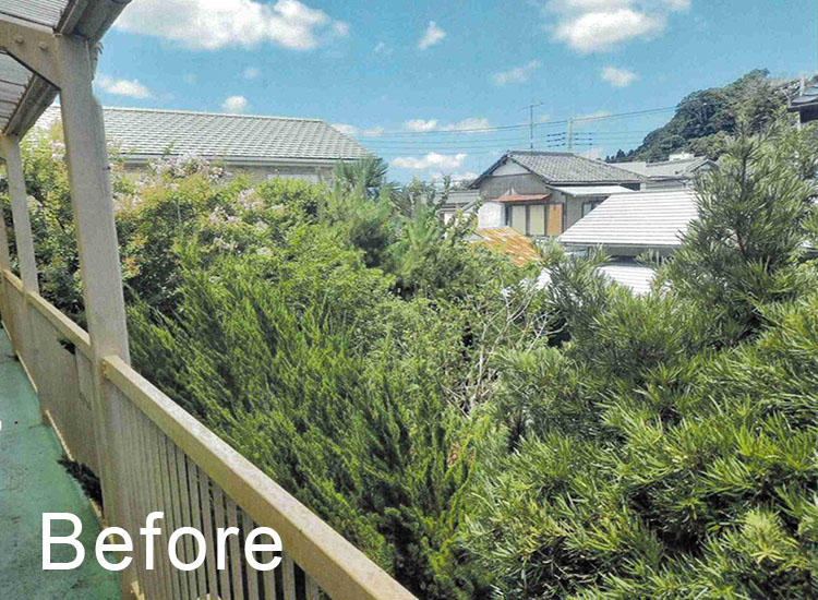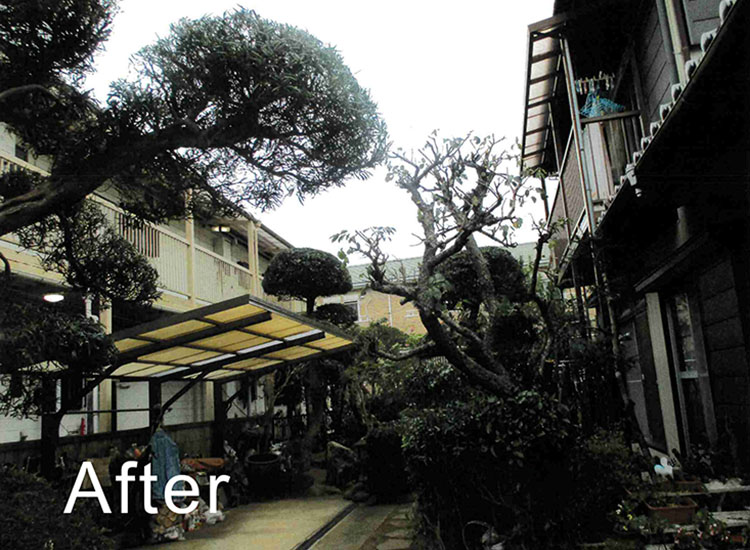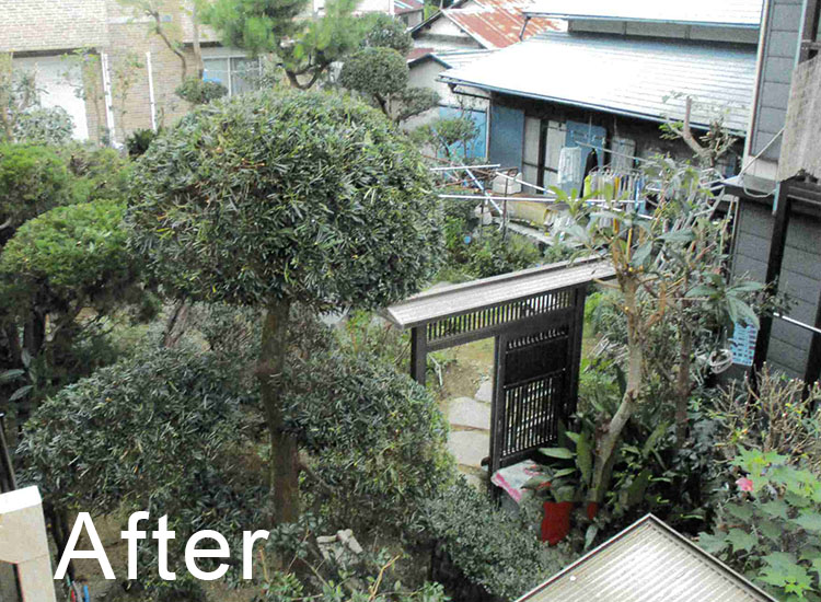 伸び放題になってしまった庭木のお手入れになります。お庭に光と風の通り道ができました。