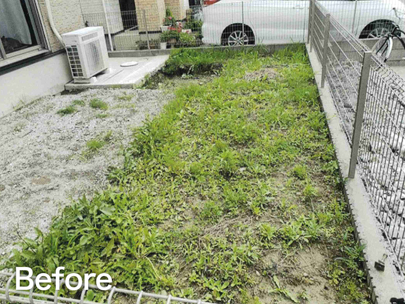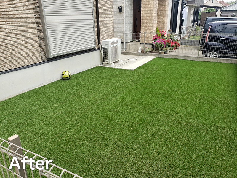 水はけの悪い中庭に暗渠排水を設け、人工芝のお庭にリガーデンしました♪