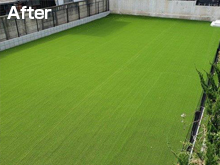 「固く平らな下地作りと人工芝がずれないように設置すること」