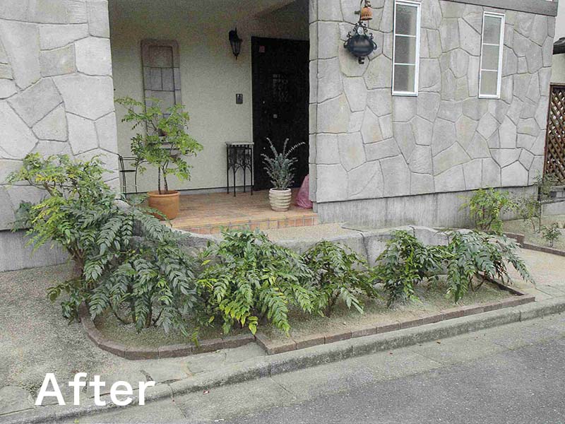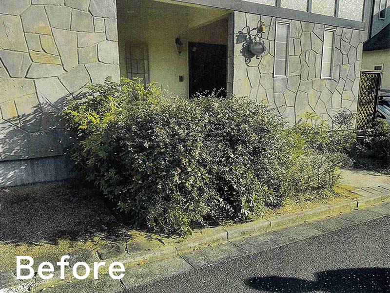 大きくなり過ぎて、管理が難しくなってしまった植栽スペースの改修になります。