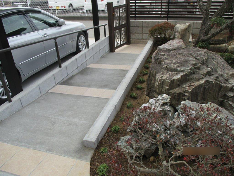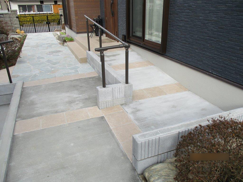 また、スロープに手摺を設けて、ライフステージに寄り添うお庭を心がけました。