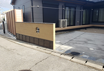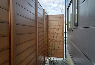 目隠しフェンスが現代っぽさをプラスし、全体をナチュラルモダンでまとめました。