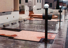 駐車スペースとアクセントの効いた玄関アプローチ