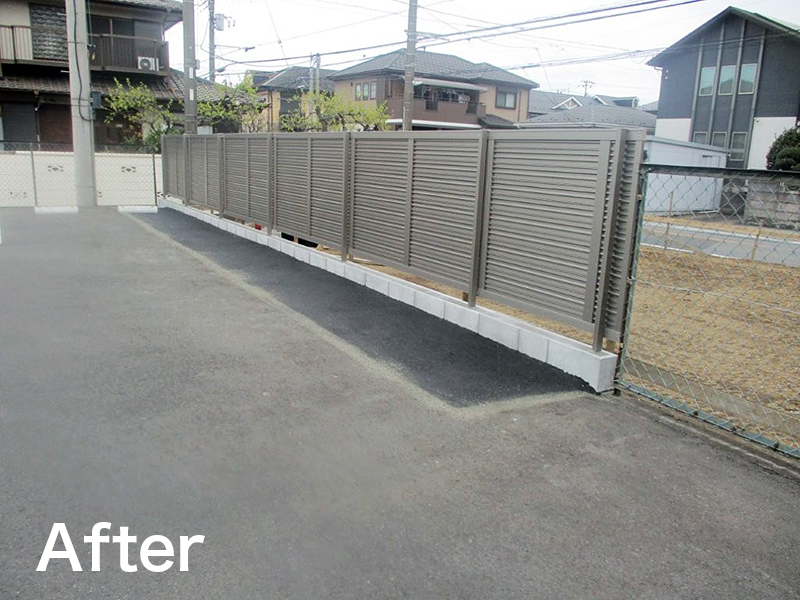老朽化したブロック塀を解体し、土留やり替え+フェンスを施工しました。