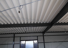 ①屋根材はルーフデッキのぺフ付き