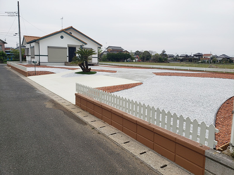 雑草の繁茂を軽減するために、防草シート+砕石を敷き込みました。