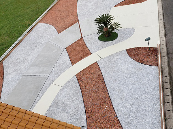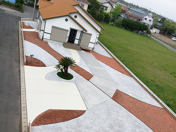 「瓦チップの赤」と「石灰砕石の白」で色分けし、斬新なカラーリングとなっています。