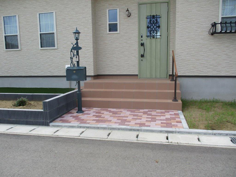 足元は透水性があって歩きやすいインターロッキングで仕上げました。