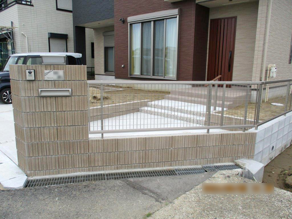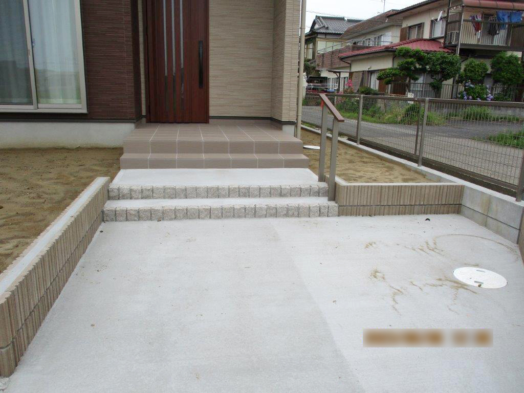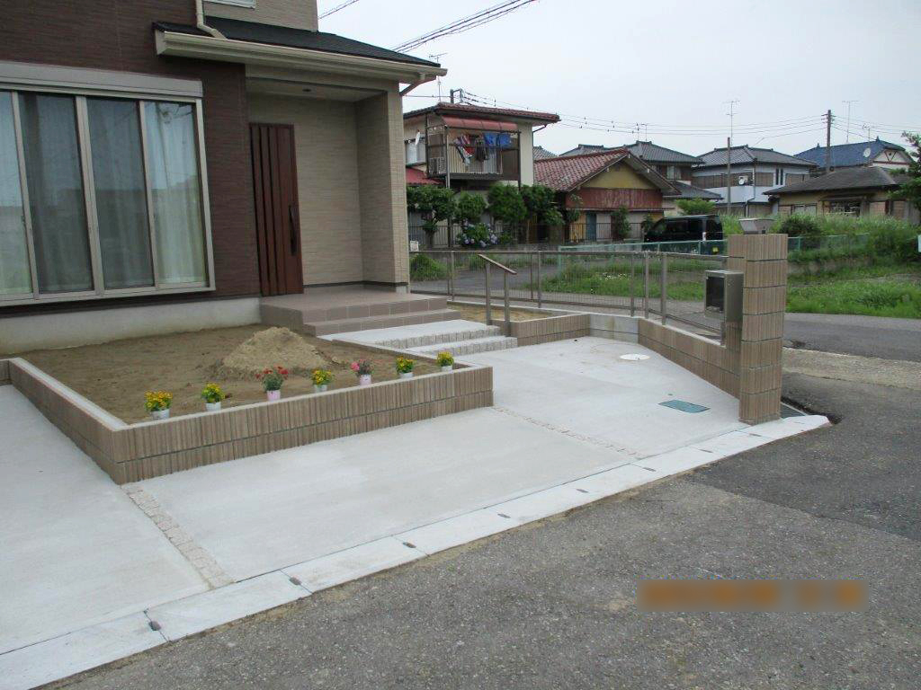 その他、手摺り付きアプローチ、ガーデニングスペース、門袖造作、2台分の駐車場を施工しました。