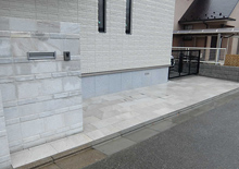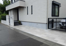 一般的なコンクリートの味気ない駐車場も、このタイルを使用すればスタイリッシュな風格が漂います。また、耐久性と防滑性を備え、メンテナンスフリーで汚れにも強いため、駐車場やアプローチにも最適な商品です。(お色は、白系・ベージュ系・グレー系があります)