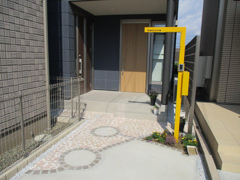 ビビットカラーの機能門柱でアクセントをつけました。