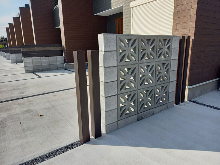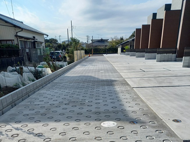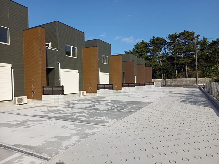 駐車場も共用で使用する部分はOリングで仕上げ、個々のスペースをデザイン分けしました!
