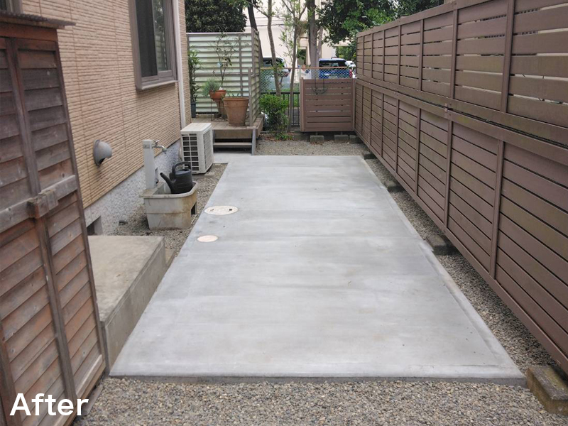 雑草対策として、コンクリート打設及び豆砂利の敷き込みを行いました!