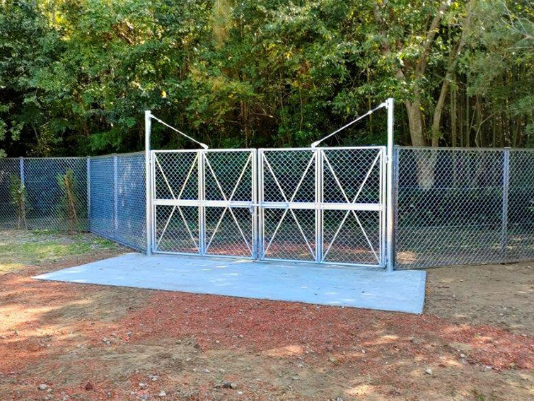 お庭の馬場へ大型門扉を取り付けました。